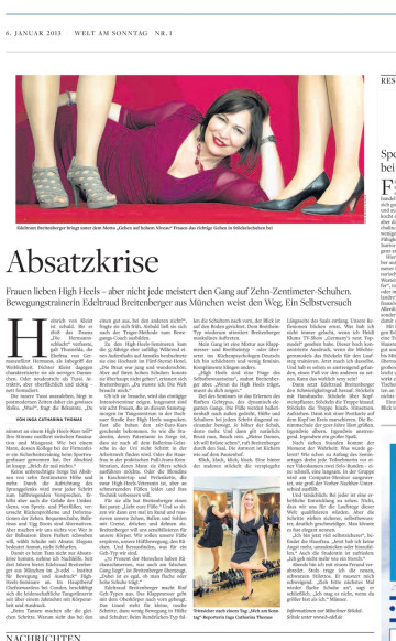 Edeltraud Breitenberger entwickelte ein Programm, das elegantes Gehen mit Ästhetik, Gesundheit und Weiblichkeit verbindet. Als TRAGER Praktikantin und langjährige passionierte Tango Argentinotänzerin weiss sie, welche Auswirkungen richtiges Bewegen auf den ganzen Körper und das eigene Selbstbewußtsein hat. Sie vermittelt in Kursen und Einzelberatung, wie sich Eleganz in der Außenwirkung mit einem gesunden Körpergefühl vereinen lässt und wie körperliche Schäden schon im Ansatz vermieden werden können. Durch diverse Fernsehauftritte wie „Menschen der Woche“ bei Frank Elstner, „Welt der Wunder“, „ARD Mittagsbuffet“ oder die Abendschau im BR, Berichte in der „Süddeutsche Zeitung“, „Welt am Sonntag“, „Bunte“ und „Bild der Frau“ sowie diverse Internetforen hat sie einen Kompetenzstatus weit über die Grenzen Deutschlands erlangt. Auf www.b-edel.de können Sie einen Einblick über ihre Arbeit bekommen.